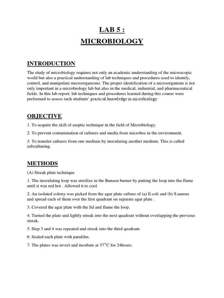Related : Aseptic Technique Lab Report : Lab Report Screen : Aseptic technique is essentially the backbone of microbiology..